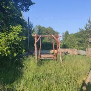 На участке роскошная липа, растущая шатром, накрывающая своим куполом и чарующим ароматом весь двор во время цветения. Стоят прекрасные деревянные качели...