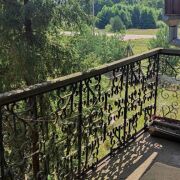 Роскошный паркет из твердых пород древесины во всём доме.Некоторые комнаты обшиты блокхаусом. Котёл на твердом топливе, подогрев воды- всё вынесено в подвал.