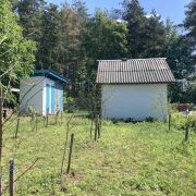 На участке имеется шикарный сад с плодовыми кустами и деревьями: яблони, груша, абрикос. слива, грецкий орех ,вишня .смородина, малина, виноград двух сортов. Участок ровный, состоит из 2 участков, по периметру огорожен металлической сеткой на металлических столбах, есть металлические ворота и калитка.