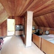 Дом мансардного типа. Материал стен -брус обложен кирпичом. Крыша шифер. Размер дома 8мХ8м. На первом этаже пять комнат, на мансарде две.