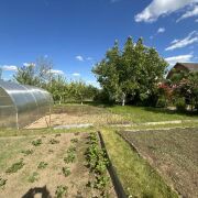 На участке имеются плодовые деревья (яблони, груши, вишни ,абрикосы, сливы) и кусты . Участок ровный , по периметру огорожен металлическим забором, есть металлические ворота.