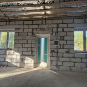 Общая площадь дома 90 кв м, жилая 77 кв м. Материал наружных стен- блоки газосиликатные, перегородки - кирпич. Окна - двухкамерные, стеклопакеты. Полы - бетон. Крыша - металлочерепица. По проекту предусмотрена терраса.