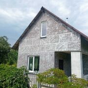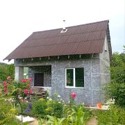 Дом строился не на продажу, а для себя, с душой. Поэтому простоит долгие годы. Снаружи термошуба с декоративной штукатуркой. Выглядит выигрышно и неизбито. Зимой хорошо держит тепло от печи-камина, летом не жарко. Труба от печи проходит через второй этаж, оба этажа прогреваются быстро. На даче есть запас яблоневых дров для печи и мангала на много лет вперёд.