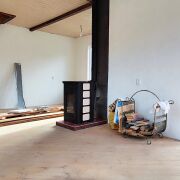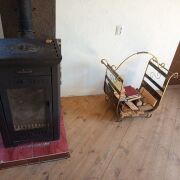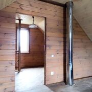-в доме есть печка, облицованная кафелем, обогревающая весь дом.