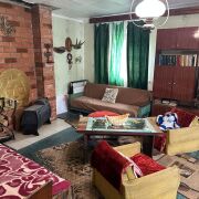 * Полы деревянные, стены оклеены обоями, окна деревянные.