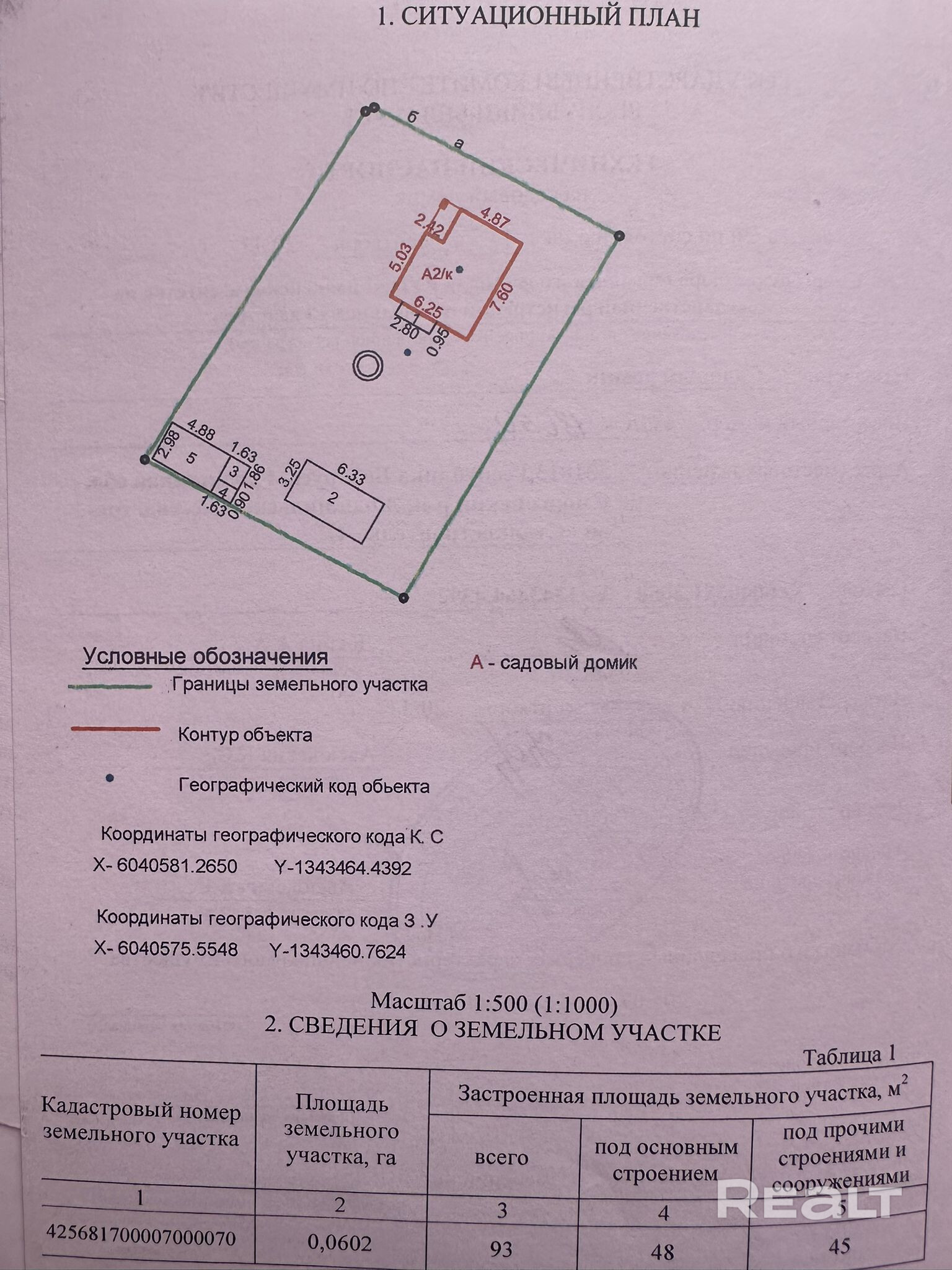 - Площадь участка