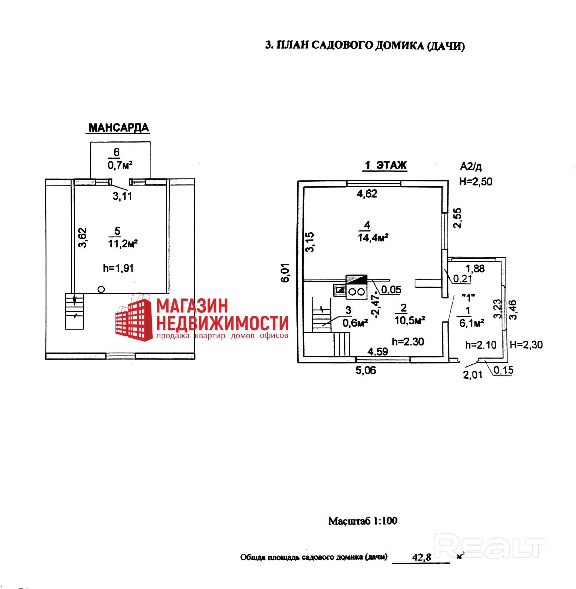 42.8 м²