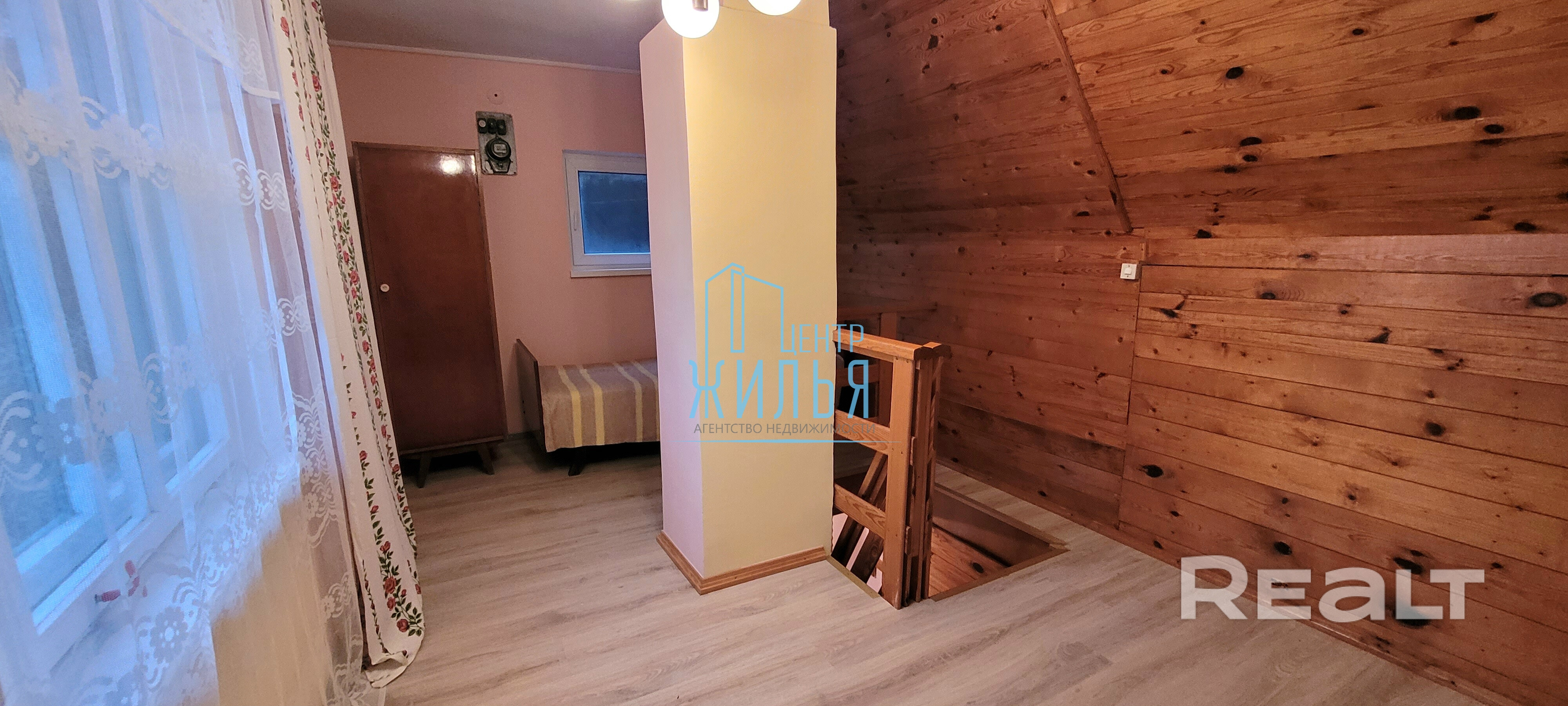 Пол: плитка (веранда), ламинат (мансардный этаж), доска (первый этаж).