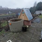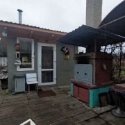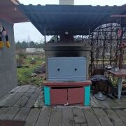Большой участок с садовыми насаждениями. Груши, яблони. голубика. На участке колодец с насосом. Утепленная летняя кухня с печкой. Гараж, хоз.постройки, дровница.