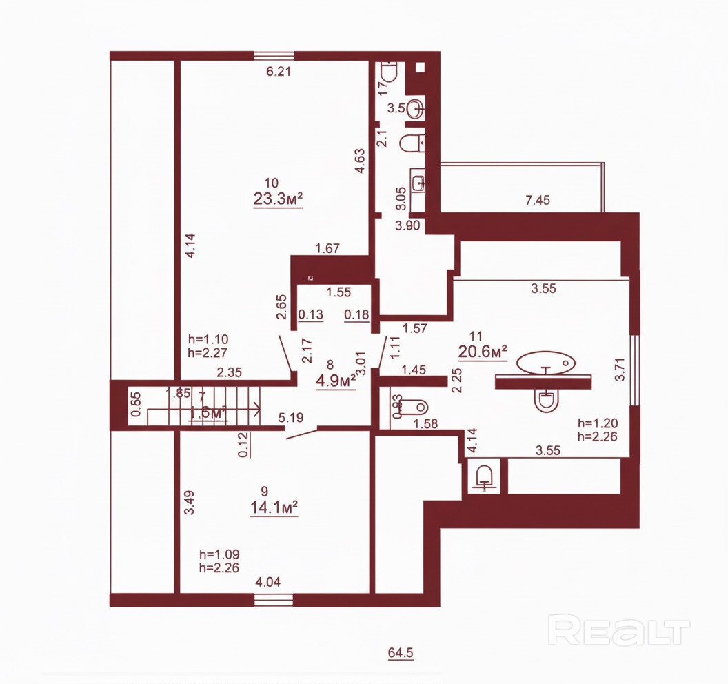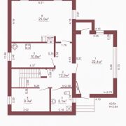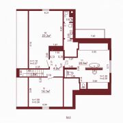 На мансардном этаже — две спальни площадью 23,3 и 14,1 м2, а также просторная ванная комната 20,6 м2.