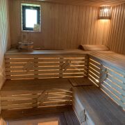 Шикарная дача в СТ Погораны всего в 10 минутах езды от Гродно с баней, террасой и камином. Участок ровный прямоугольный, 9 соток, высажен газон, детская горка с песочницей и качелями. Своя скважина и бойлер. Баня отделана липой, есть помывочная и купель. В доме 2 этажа, отделка полностью из натуральных материалов. Санузел в доме, обложен плиткой. Отопление печное. Фундамент монолитный. Крыша из металлочерепицы. Фасад дома утеплен. На террасе уличный камин