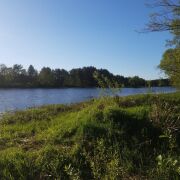 Дача находится на берегу реки Вилия, крыша андулин ( перекрывалась в 2023 году), свой колодец, вода введена в дом и подведена к бане. Тихая улица, вид на лес