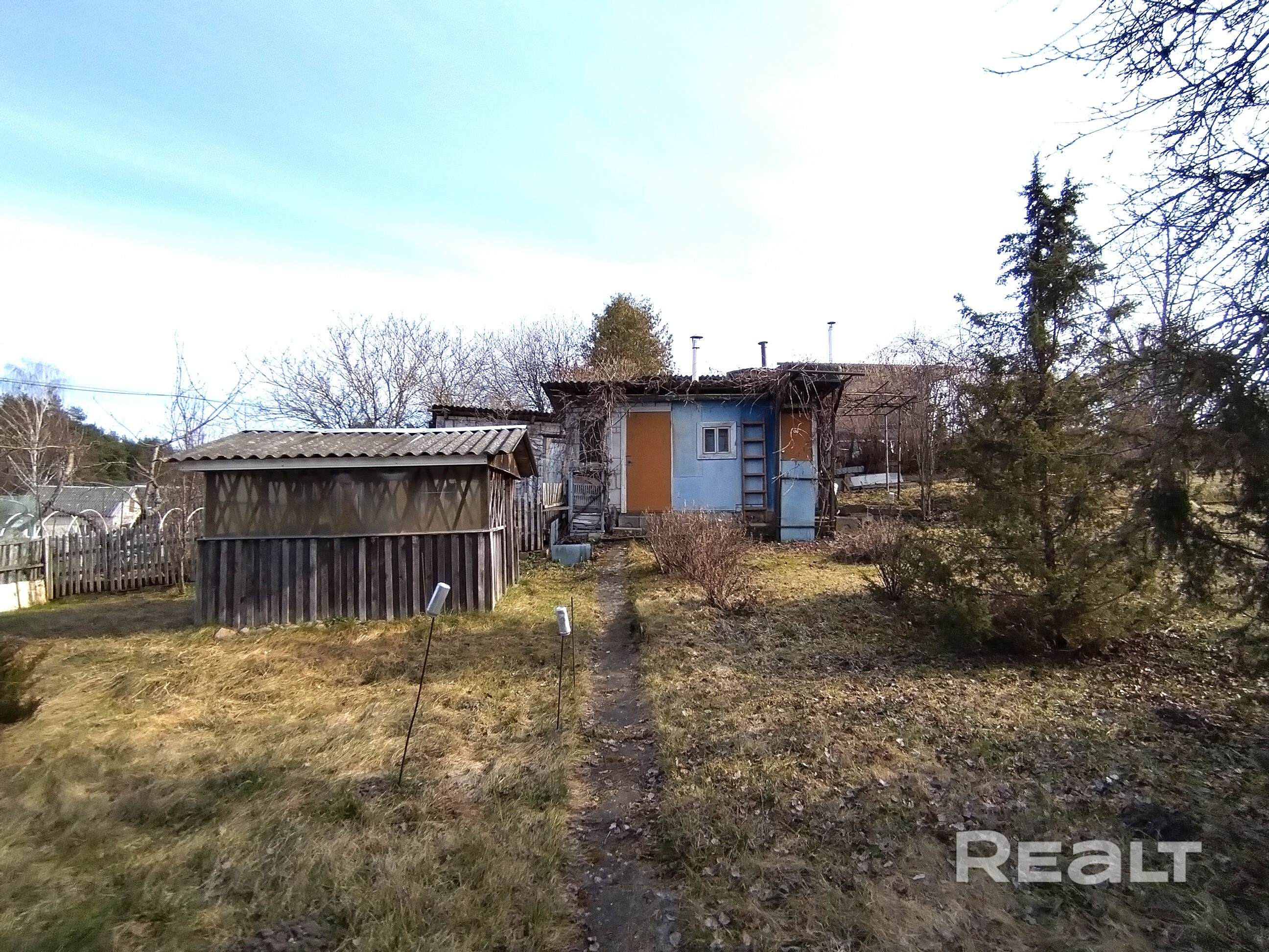 Имеется кирпичный сарай, баня с парилкой и предбанником, колодец, беседка, уборная. Участок огражден забором (сетка рабица) с воротами и калиткой.