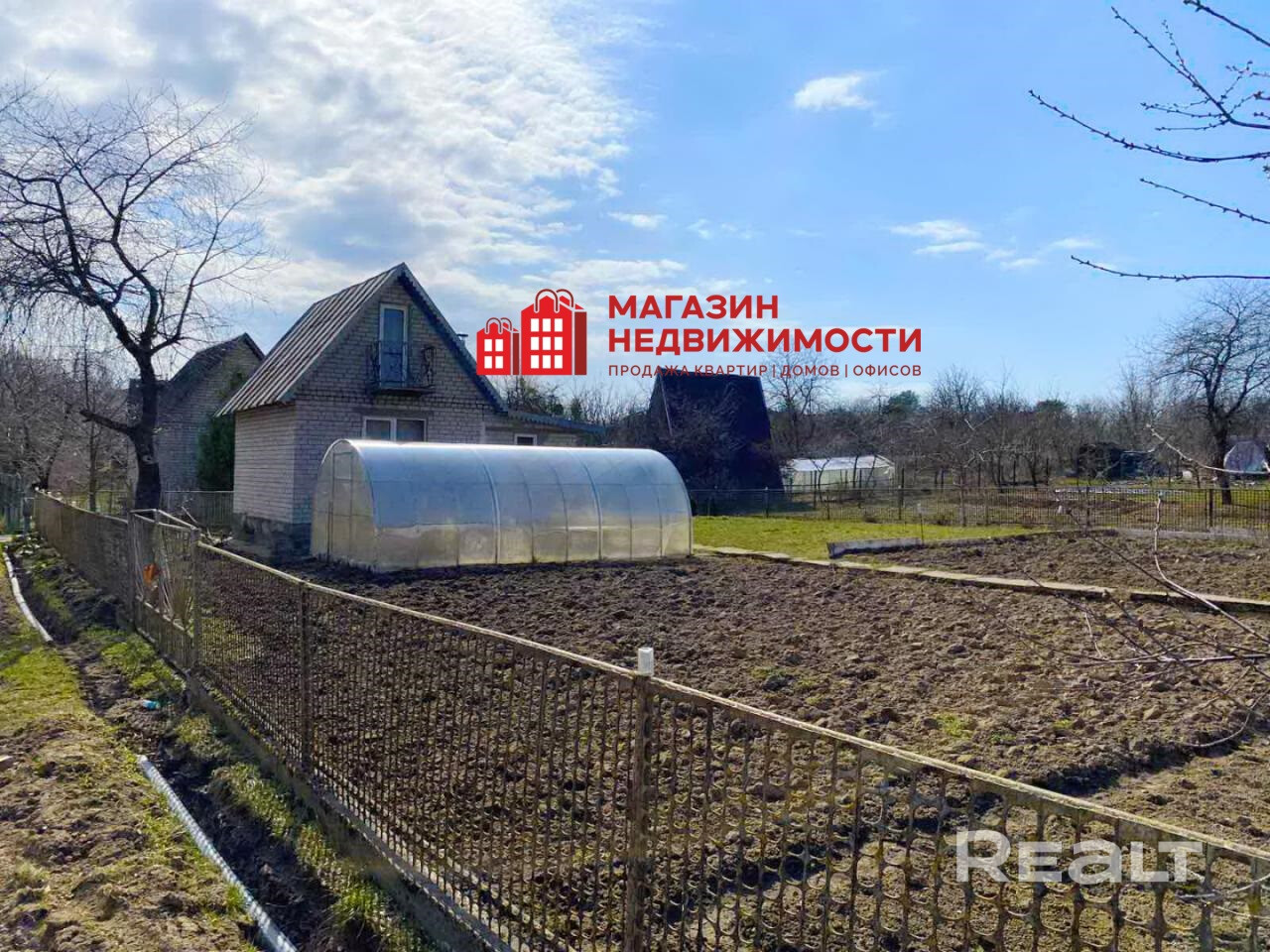 Кирпичный садовый домик построенный в 1987 году. В домике есть жилая комната, кухня и мансарда. Площадь домика 40,6 кв.м., комната 16,8 кв.м., кухня 10,3 кв.м, мансарда 9,2 кв.м. На кухне расположена печь, в комнате есть погреб для хранения овощей. Окна: ПВХ. Электроснабжение.
