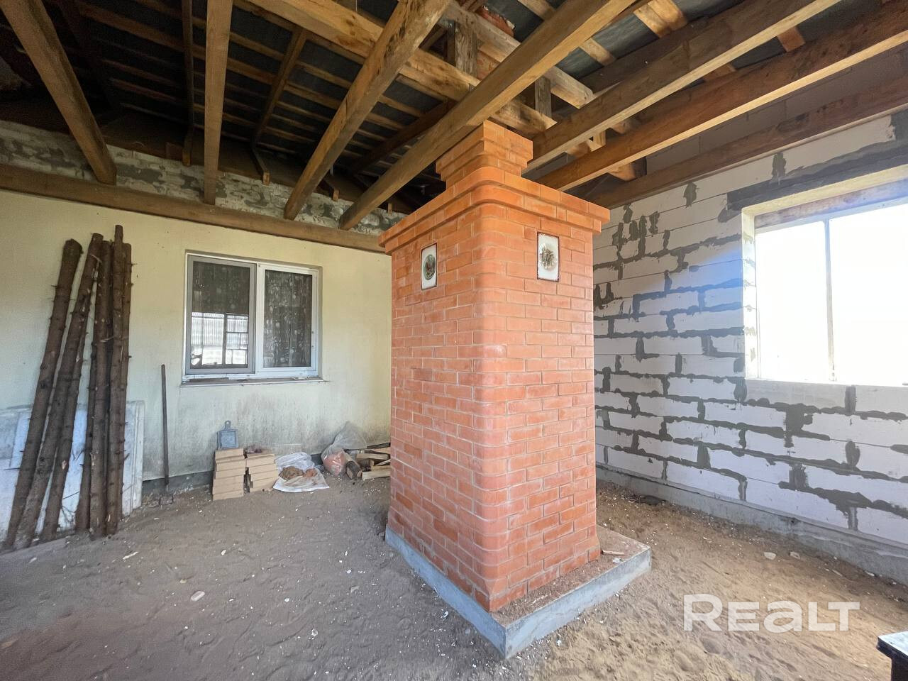 Дом кирпичный, утеплен. В процессе реконструкции. Возведена блочная пристройка, где по плану есть возможность разместить санузел.