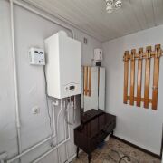 Все коммуникации заведены в дом. Канализация центральная, разведена под фундаментом. Отопление – двухконтурный газовый котёл. Материал полов –¬ ламинат, плитка. Санузел совмещен, облицован плиткой. Оконное остекление осуществлено энергосберегающими стеклопакетами. В квартире есть погреб.
