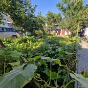 На участке построен сарай. Дорожки вымощены декоративной плиткой.