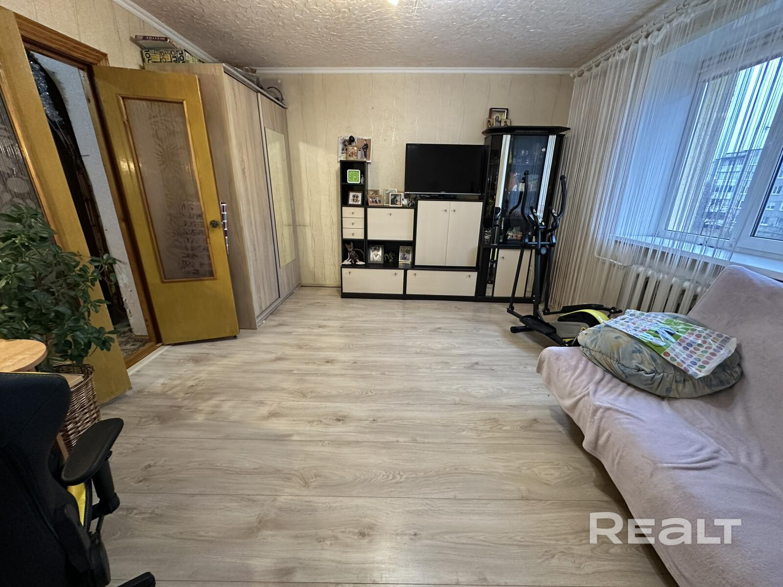 Три изолированные комнаты, кухня (7.7 м2), раздельный санузел, просторная лоджия.
