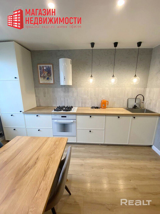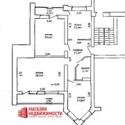 Площадь квартиры с двумя просторными застекленными лоджиями 100,3 кв.м, общая площадь жилых помещений 91,6 кв.м, жилая площадь 62,8 кв.м. В квартире три просторные жилые комнаты: зал с двумя окнами площадью 28,5 кв., спальня площадью 20,3 кв.м, детская с эркером площадью 14,0 кв.м, ванная площадью 5,1 кв.м, коридор 11,3 кв.м, и кухня площадью 12,4 кв.м. с выходом на застекленную лоджию площадью 3,3 кв.м. Поистине шикарная квартира в Гродно.