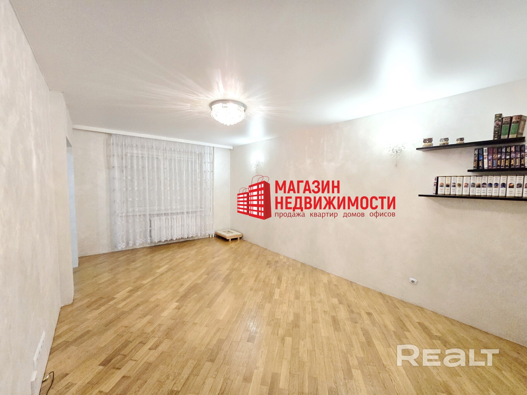 Продается 4-комнатная квартира в самом комфортном районе города Гродно на улице Пушкина дом 33. Квартира располагается на первом этаже 9-этажного дома. Дом построен из железобетонных панелей в 2007 году.