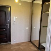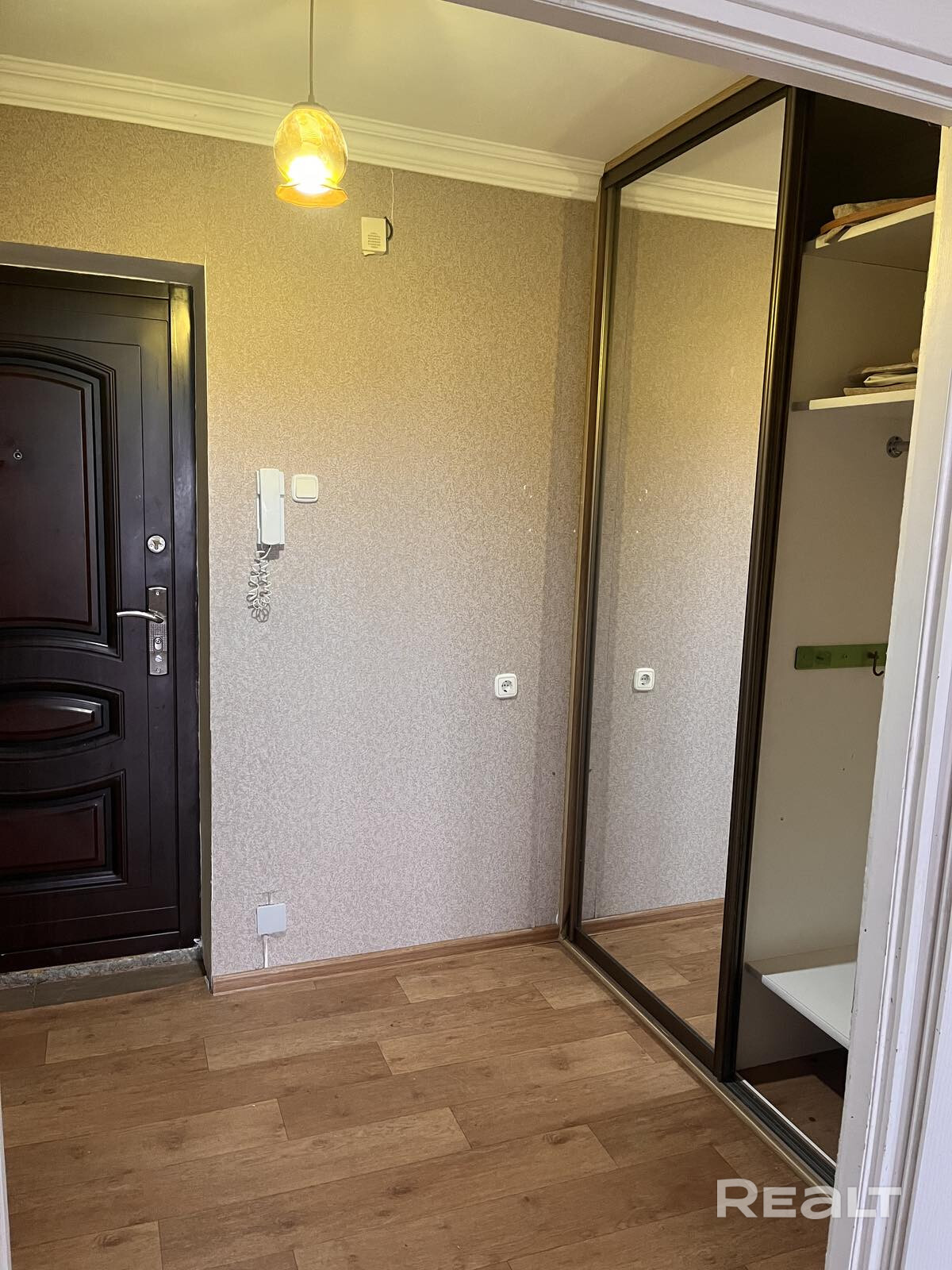 Продаётся квартира в 12-этажном доме, 2 изолированные комнаты. Дом газосиликатные блоки, кирпич, железобетонные перекрытия. 2 лоджии - одна на кухне, вторая в спальне. Металлическая входная дверь, межкомнатные двери деревянные, окна стеклопакеты, лоджии застеклены. Новая сантехника, 2 встроенных шкафа. Зеркальный шкаф находится в прихожей и занимает всю стенку, второй в спальне также на всю стену. Дом расположен в тихом, но развивающемся районе, рядом магазины, торговый центр Тринити. Торг
