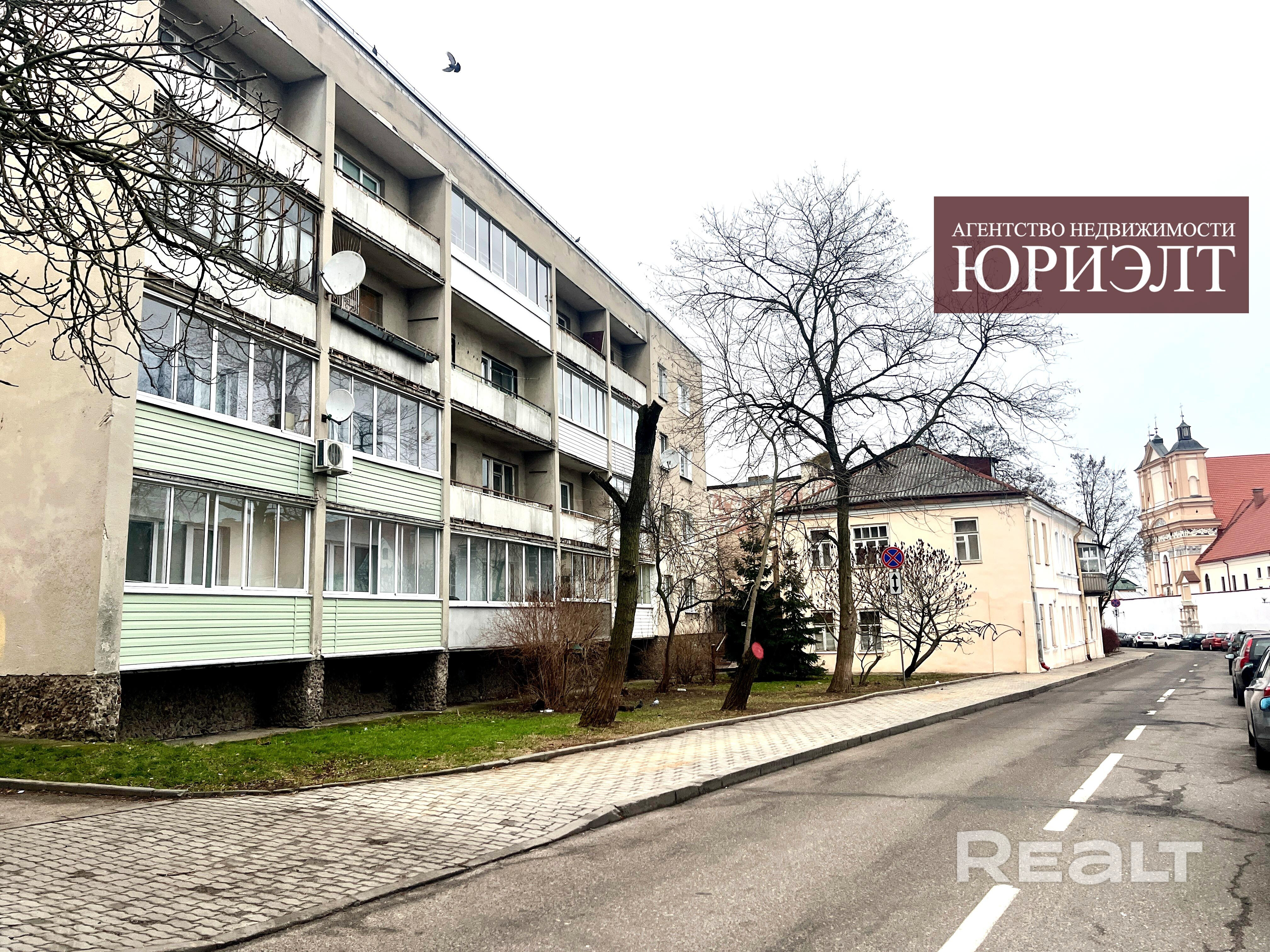 В продаже просторная квартира, расположенная в самом сердце исторического центра города Гродно. Улица Молодежная дом 11. Квартира находится в тихом дворе, окруженном историческими достопримечательностями. Из окон виден костёл Благовещения Девы Марии. В шаговой доступности находятся все основные достопримечательности города: костёл святого Франтишка Ксаверия, музеи, площадь Советская, драмтеатр, Старый и Новый замок, остановки общественного транспорта, магазины, учреждения образования, аптеки и др.