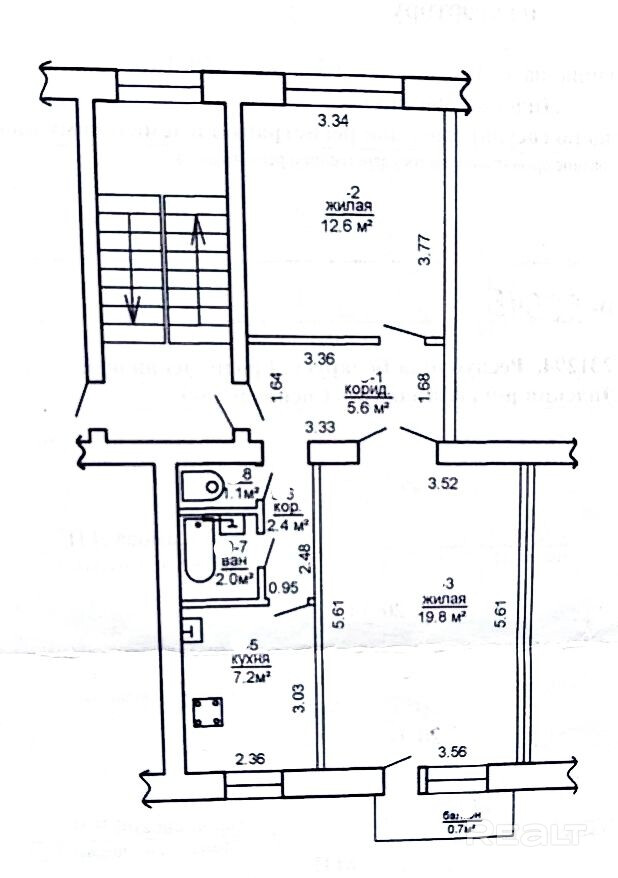Общая площадь квартиры составляет 50,7 кв.м., из которых жилая площадь составляет 32,4 кв.м., а площадь кухни — 7,2 кв.м.