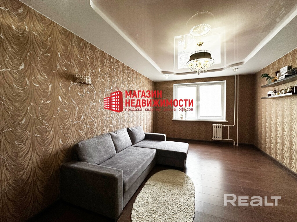 Входная металлическая дверь. Установлены пластиковые окна. На полу ламинат, стены оклеены обоями, натяжные потолки по всей квартире, санузел раздельный, облицован плиткой. Лоджия остеклена. В квартире сделан хороший ремонт. Остается встроенная кухня, мебель и техника по согласованию. За квартирой закреплен подвал.