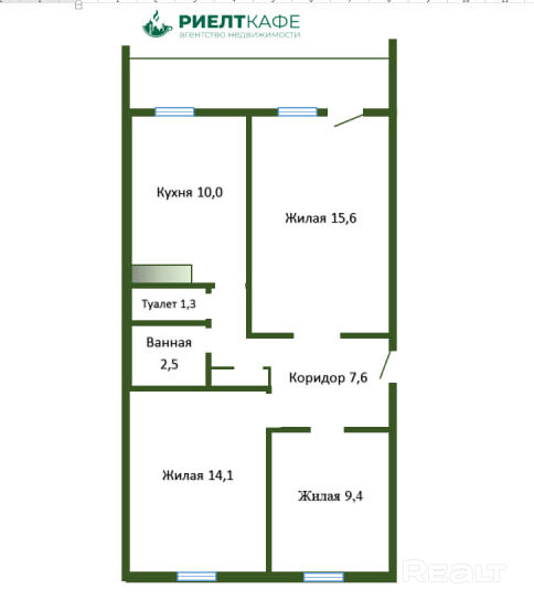 Общая площадь 58,7 м2, три изолированные комнаты: 15,6 м2; 14,1 м2; 9,4 м2, кухня 10,0 м2, ванная 2,5 м2 и туалет 1,3 м2 раздельные. Застекленная лоджия с выходом из комнаты, окна на разные стороны (восток - запад), встроенный шкаф 2,5 м2. Квартира с косметическим ремонтом, окна ПВХ.