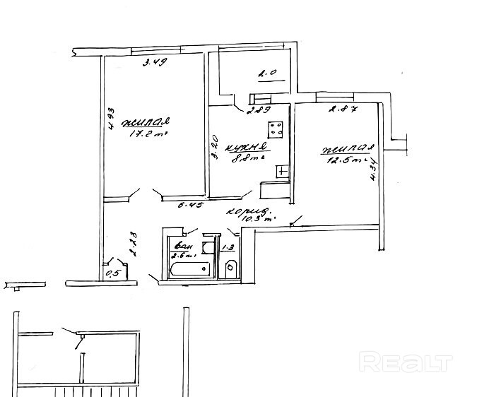Параметры квартиры: общая площадь- 53,1 кв м жилая площадь- 29,5 кв м, кухня- 8,8 кв м.
