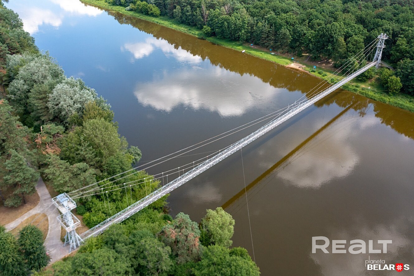 Рядом с домом расположен один из главных символов города – пешеходный подвесной мост через Неман, самый длинный (193 м) в Беларуси. После реконструкции он станет ещё эффектнее: стеклянная секция и вечерняя подсветка делают прогулки по мосту по-настоящему атмосферными и фотогеничными.
