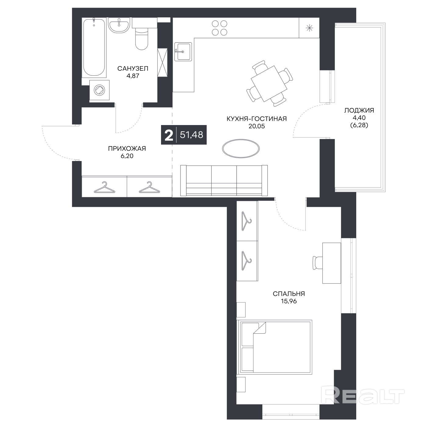 Продается двухкомнатная квартира площадью 49,9 м 2 с Принадлежностью к квартире (машино-место на автомобильной стоянке) в жилом комплексе NEW CITY (г. Гродно).