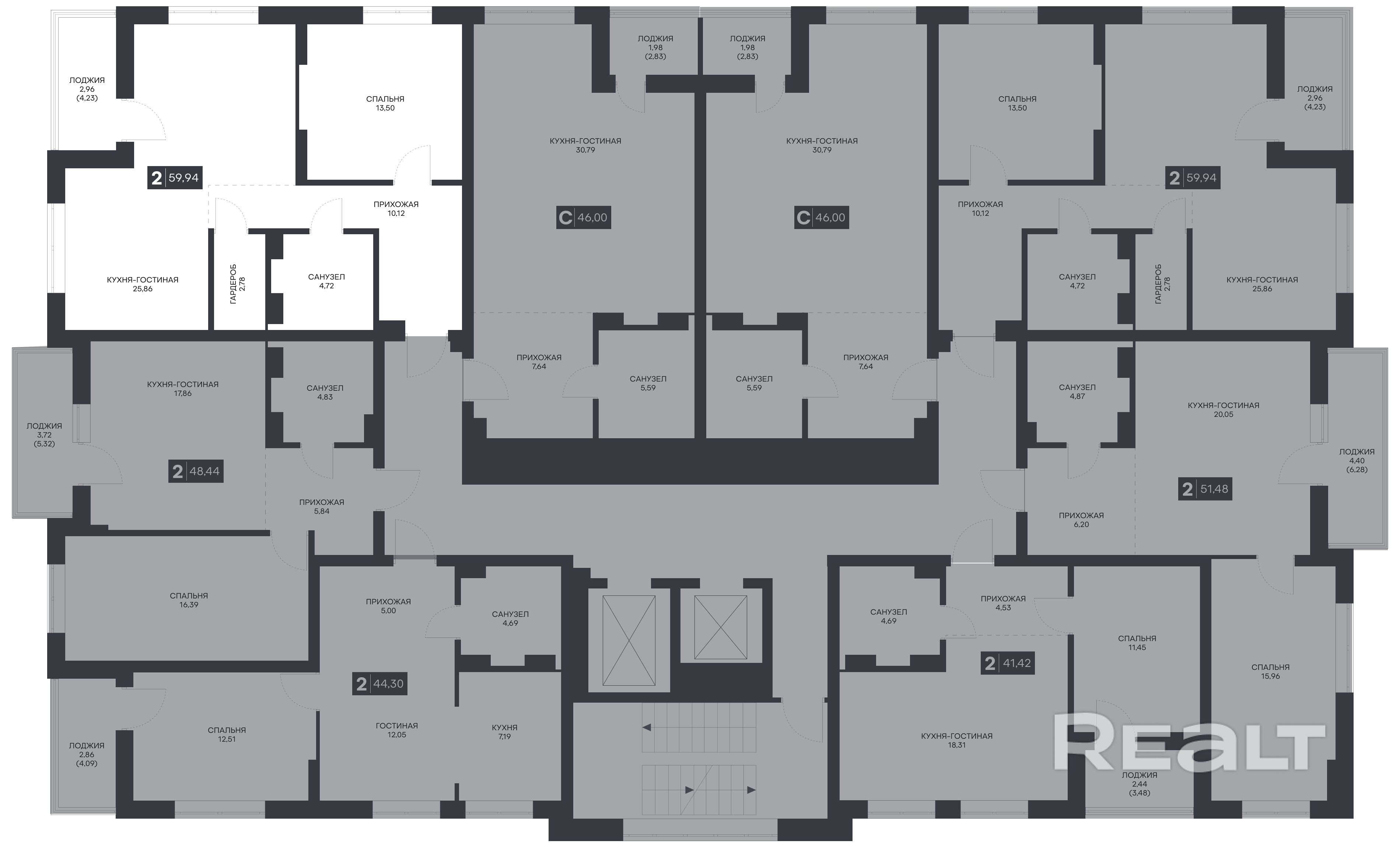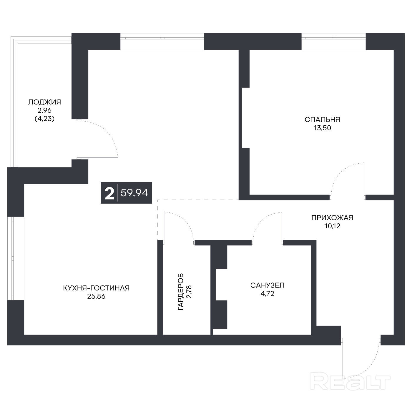 Продается двухкомнатная квартира площадью 59,4 м 2 в жилом комплексе NEW CITY (г. Гродно).