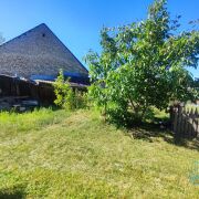 Дом одноэтажный бревенчатый, перекрытия деревянные, крыша – шифер. Установлены стеклопакеты, пол – ламинат, ДСП. Есть погреб. Отопление печное (две печки). Общая площадь квартиры 46 м.кв., состоит из двух комнат, кухни, коридора. Коммуникации центральные: электричество разведено по дому, вода холодная введена в дом, газ – по участку, канализация – по улице. Земельный участок 5 соток огорожен со всех сторон. Вход отдельный от соседей.