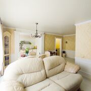 Квартира полностью готова к проживанию, продается с мебелью: кухонная мебель, холодильник, обеденная группа, мягкая мебель в гостиной, электрокамин, мебель в спальнях. Металлическая входная дверь; стеклопакеты ПВХ. Стены обои и декоративный кирпич. Пол ламинат и керамогранит. Потолок натяжной в кухне и гостиной, в спальнях окрашен. Лоджии застеклены. Домофон. Имеется кладовая на этаже. Проведены работы по утеплению наружных стен квартиры.