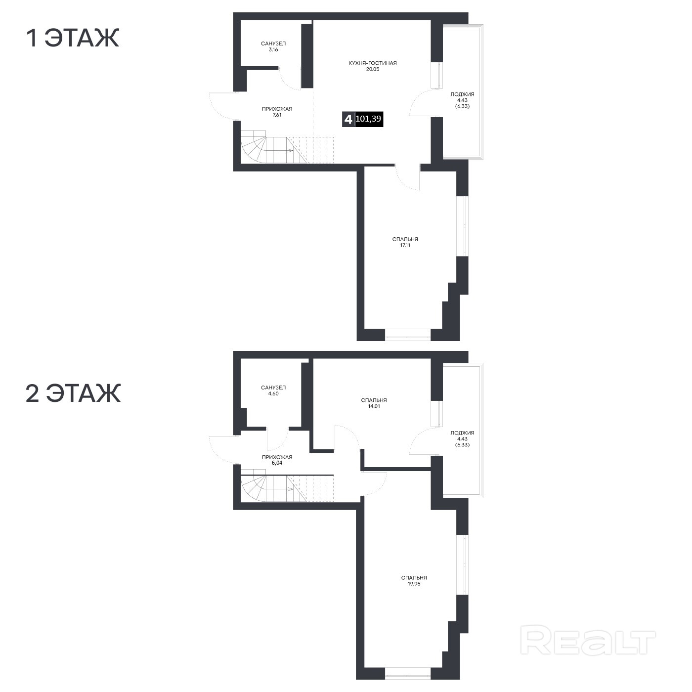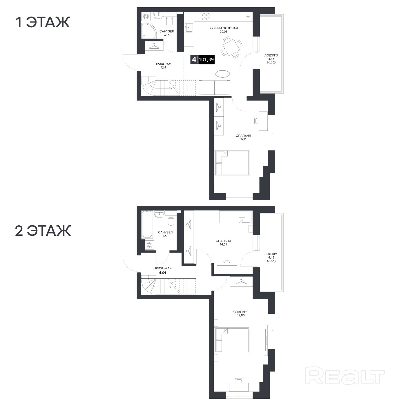 Продается четырехкомнатная двухуровневая квартира площадью 99,3 м 2 в жилом комплексе NEW CITY (г. Гродно).