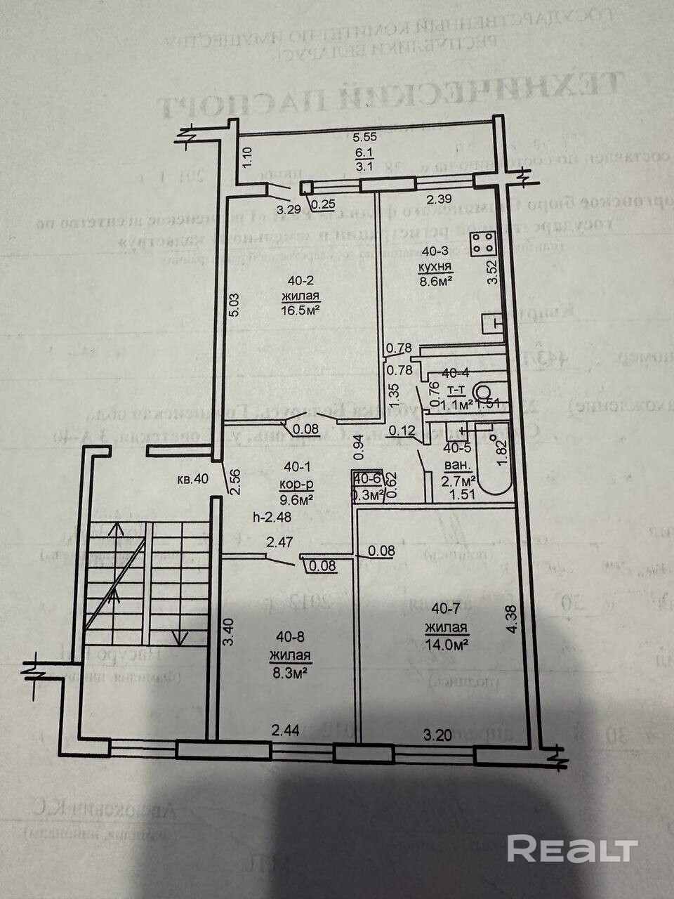 Ключевые параметры: * Где: г. Сморгонь ул. Советская 3а, 5 этаж. * Дом: панельный, 1980 года, пятиэтажный. * Квартира: 40/5 этаж. Общая площадь 64,2 кв.м. (жилая 38,8 кв.м., кухня 8,6 кв.м.). * Комнаты: 3 раздельные (16,5 кв.м., 14 кв.м., 8,3 кв.м.). * Дополнительно: Лоджия 5,55 кв.м., с/у раздельный, высота потолков 2.8 м.