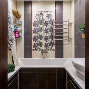 Материал полов: плитка (санузлы , часть коридора ) и ламинат .