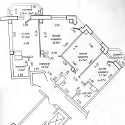Параметры квартиры: общая площадь- 81,4 кв м, жилая площадь- 44,7 кв м, кухня- 16 кв м.