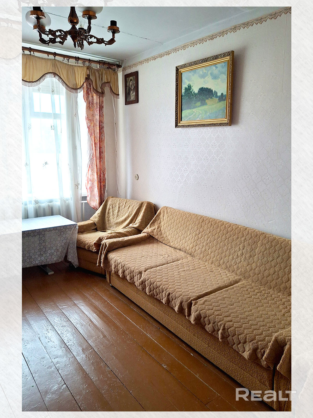 Трехкомнатная, свободная и требующая ремонта, квартира на втором этаже пятиэтажного кирпичного дома 1972 года постройки по улице Советской в центре Новогрудка.