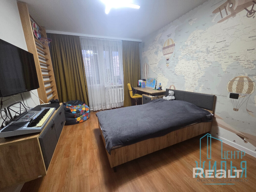 Продается трехкомнатная квартира по проспекту Клецкова, д.5. Квартира расположена на пятом этаже пятиэтажного дома 1994 года постройки. Квартира с жилым ремонтом. Общая площадь 68,9 м.кв, жилая 44,1 м.кв., кухня 8,1 м.кв. Квартира продается частично с мебелью. Имеется две застекленные лоджии, обе утеплены, пол на обоих деревянная доска. На одной из них полностью сделан ремонт, отделка сайдингом на стенах и на потолке. В комнатах на стенах обои, на полу ламинат, потолки натяжные в спальне и детской, в остальных комнатах крашенные. В ванной комнате и санузле плитка. Металлическая стальная дверь, окна ПВХ.