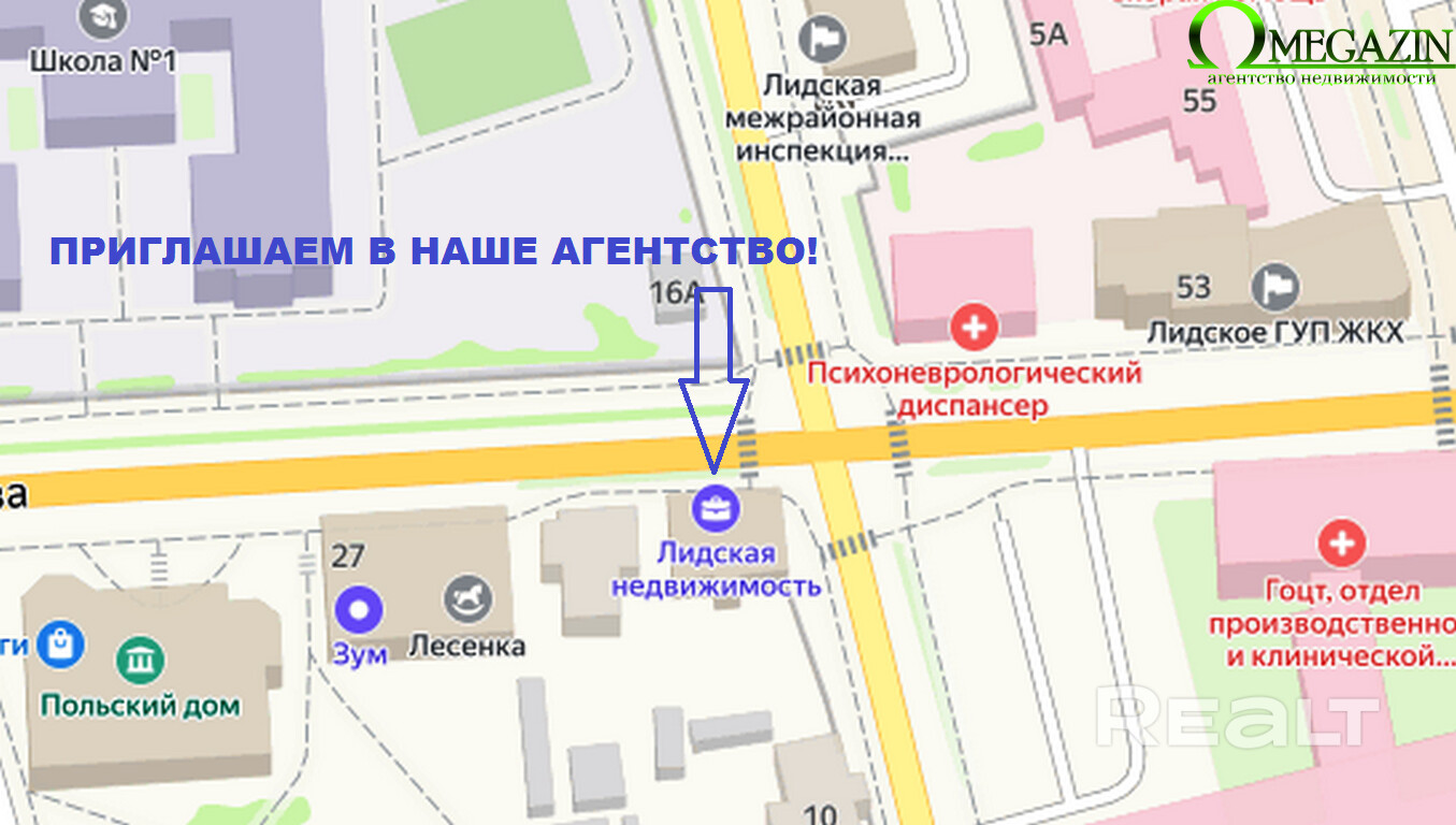Услуга осуществляется агентством Филиал "Лидская недвижимость" ООО “Фирма 2К и К”. Наш адрес: г. Лида, ул. Кирова, дом 23. Сайт: https://omegazin.by. Более 30 лет мы квалифицировано и оперативно помогаем своим клиентам в реализации недвижимости! Беремся за ситуации любой сложности! Лицензия на осуществление деятельности по оказанию риэлтерских услуг №02240/63 от 12.08.2005.