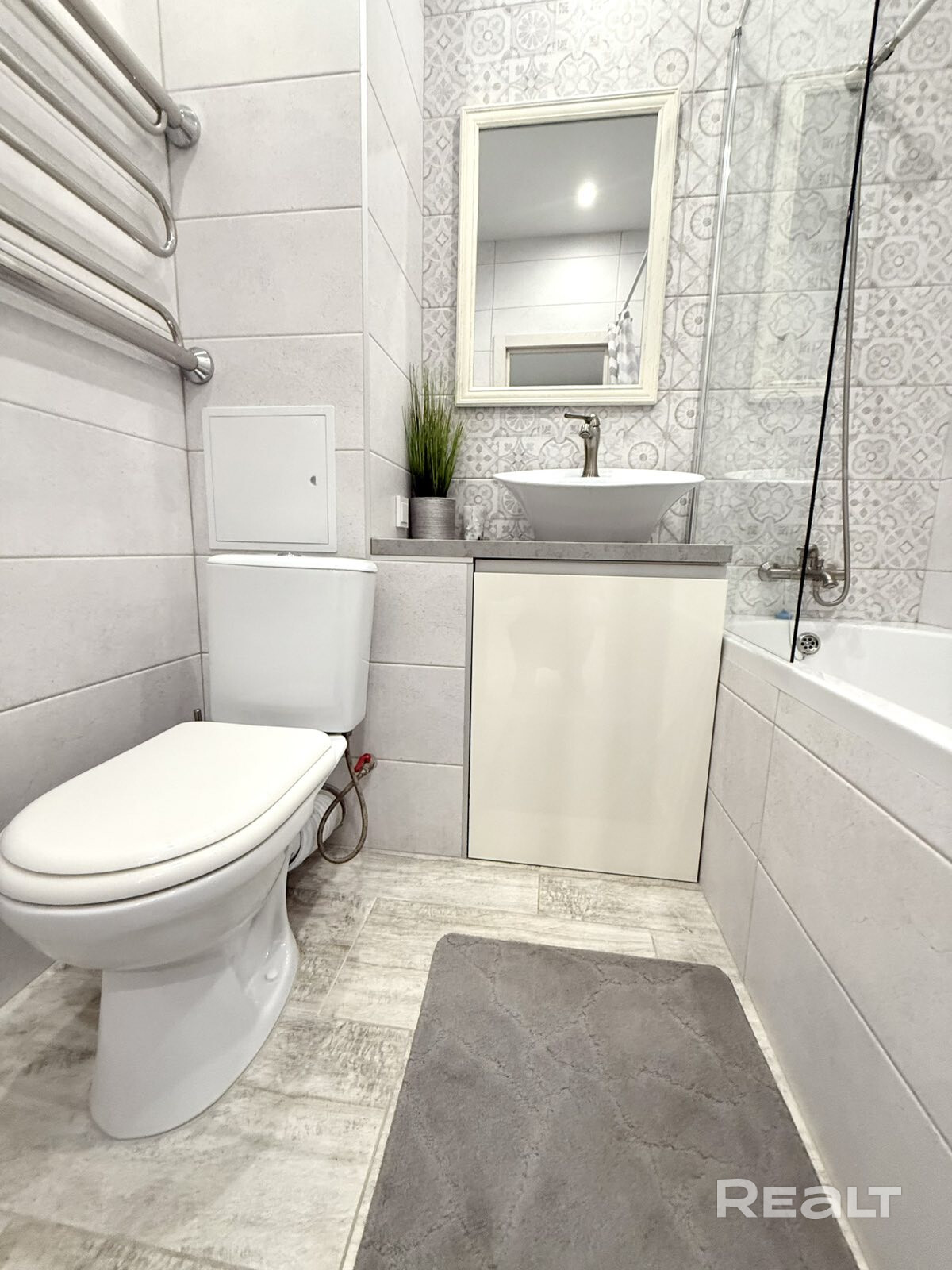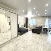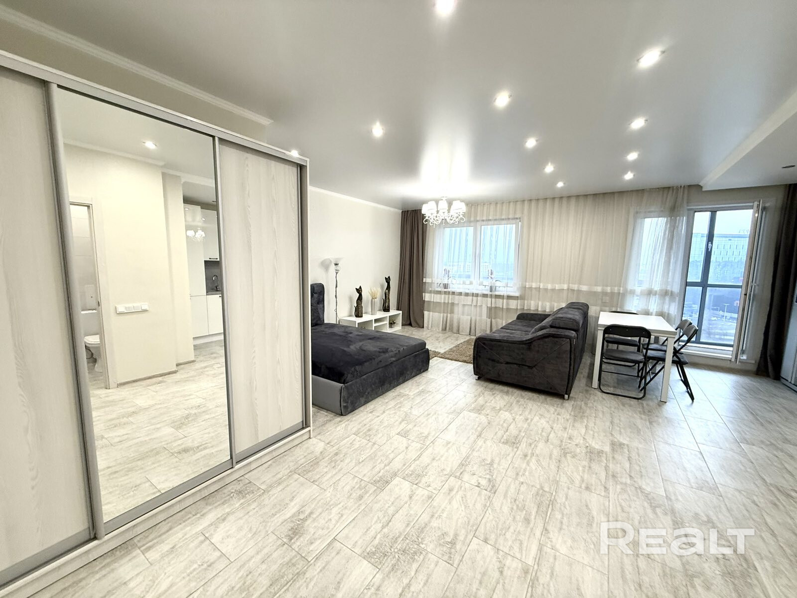 Просторная квартира студия общей площадью по СНБ 47 кв.м. в современном панельном доме 2020 года постройки на 11 этаже. В квартире выполнен качественный ремонт в светлых тонах, входная металлическая дверь, на полу керамогранит, шкаф-купе, встроенный кухонный гарнитур, посудомоечная и стиральная машина, духовой шкаф, установлен бойлер. Большая панорамная остекленная лоджия с видом на ТЦ Тринити. Вся мебель и техника остаются. Квартира полностью готова к проживанию. Также это идеальный вариант под инвестицию. Эта квартира на высоком этаже привлекательна для туристов города при краткосрочной аренде.