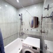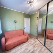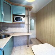 В квартире хороший косметический ремонт. Установлены окна ПВХ. Металлическая входная дверь. Современные межкомнатные двери. Полы, стены и потолки выровнены. Стены оклеены обоями, полы – ламинат и плитка, потолки окрашены белой матовой краской. Удобная современная угловая кухня. Санузел раздельный, облицован плиткой. Сантехника в хорошем состоянии. В прихожей удобная гардеробная. Есть благоустроенная застекленная лоджия. За квартирой закреплена кладовая в подвале.
