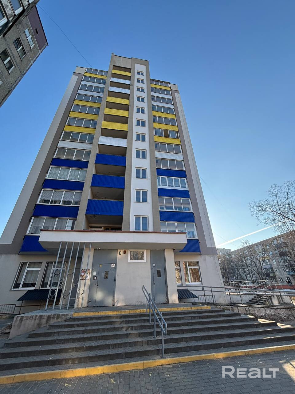Двор уютный, утопающий в зелени. Аккуратный чистый подъезд с двумя лифтами, спокойные соседи.