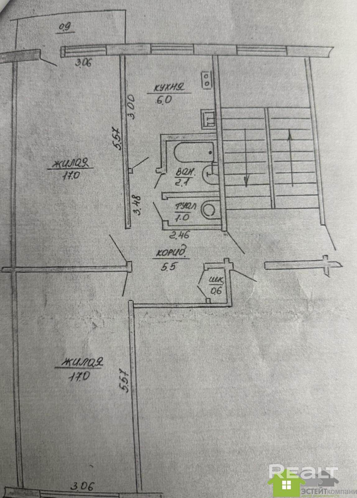 - 2 изолированные комнаты по 17 м2, выходящие на разные стороны