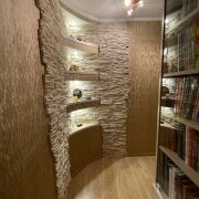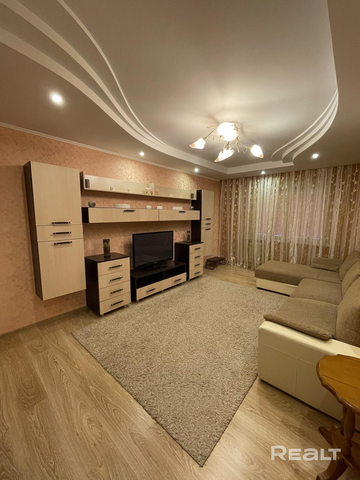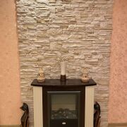 В квартире выполнен ремонт из высококачественных дорогих материалов в тёплых натуральных тонах: на полу ламинат, на кухне и в санузлах — керамическая плитка, стены отделаны декоративным камнем. Электрокамин добавляет не только душевного тепла. Утеплённая и застеклённая лоджия - дополнительное пространство для релакса.