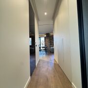 Межкомнатные двери изготовлены по индивидуальным размерам в премиальном салоне дверей Lazio. Потолки-гипсокартон.