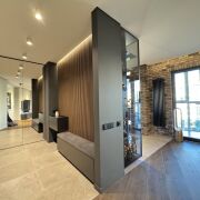 Входная дверь - это электромеханическое современное устройство с усовершенствованным датчиком биометрии, высота 2,4 м.