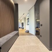 Использование керамогранита для отделки откосов позволило создать стильный и современный интерьер.